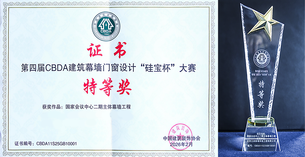 國家會議中心二期主體幕墻工程榮獲第四屆CBDA建筑幕墻門窗“硅寶杯”設(shè)計(jì)大賽特等獎