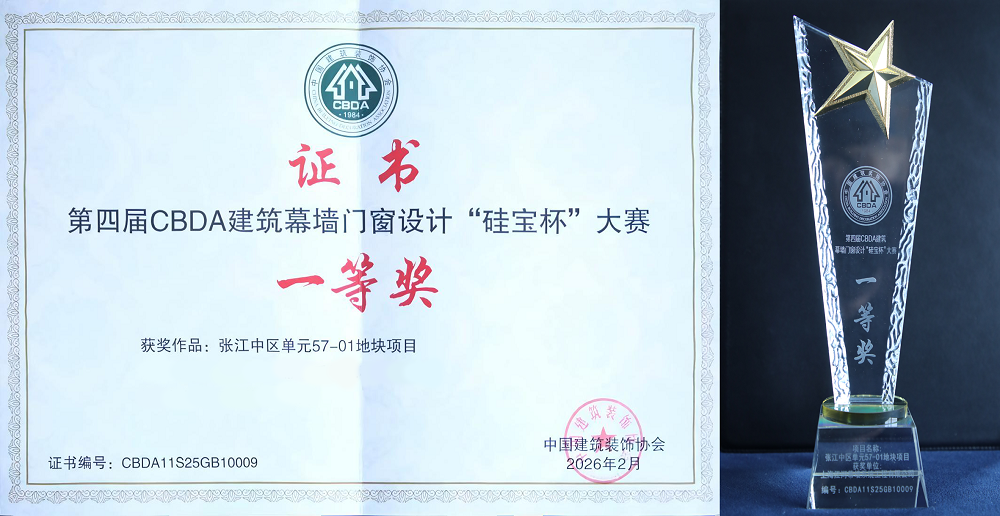 張江中區(qū)單元57-01地塊項(xiàng)目榮獲第四屆CBDA建筑幕墻門窗“硅寶杯”設(shè)計(jì)大賽一等獎