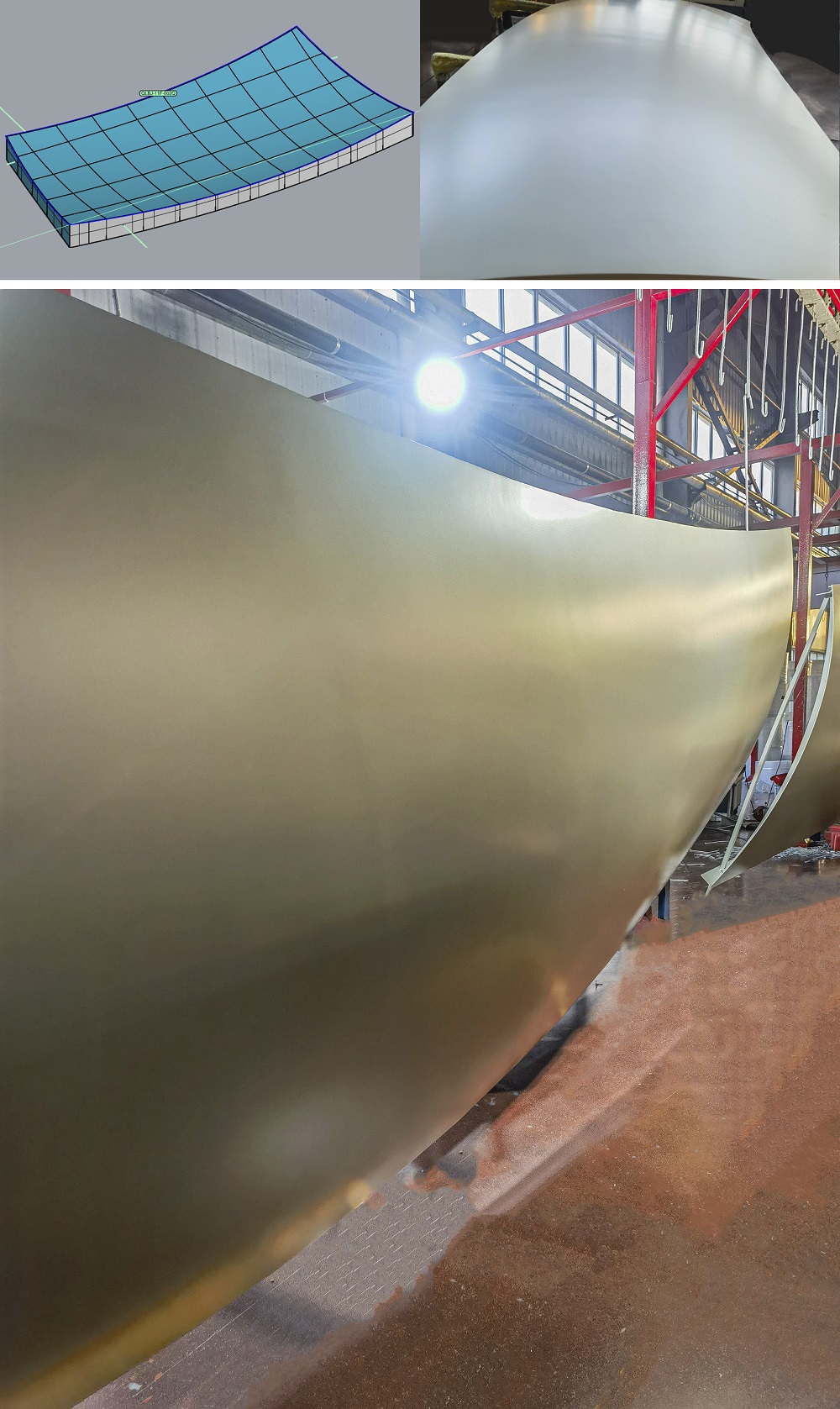 值得一提是的主樓八根香檳色鋁板巨型角柱,該工藝為鋁幕墻制造工藝中最復(fù)雜的雙曲,每根柱子由54個(gè)雙曲單體構(gòu)成,每個(gè)單體面積約8平方,雙曲面經(jīng)過工匠們精心打磨,才成就流暢的單元體線條。難度最大的是,所有拼成柱體的板件尺寸大多為特大1800*6000mm異型板,采用單元板式設(shè)計(jì),每件板超寬、超長(zhǎng),單件板重達(dá)130kg,相當(dāng)于2個(gè)成年人的重量。每次鈑金、轉(zhuǎn)序、從噴涂隧道順利噴漆完成,都十分的小心,傾注雅泰所有操作者的心血。
