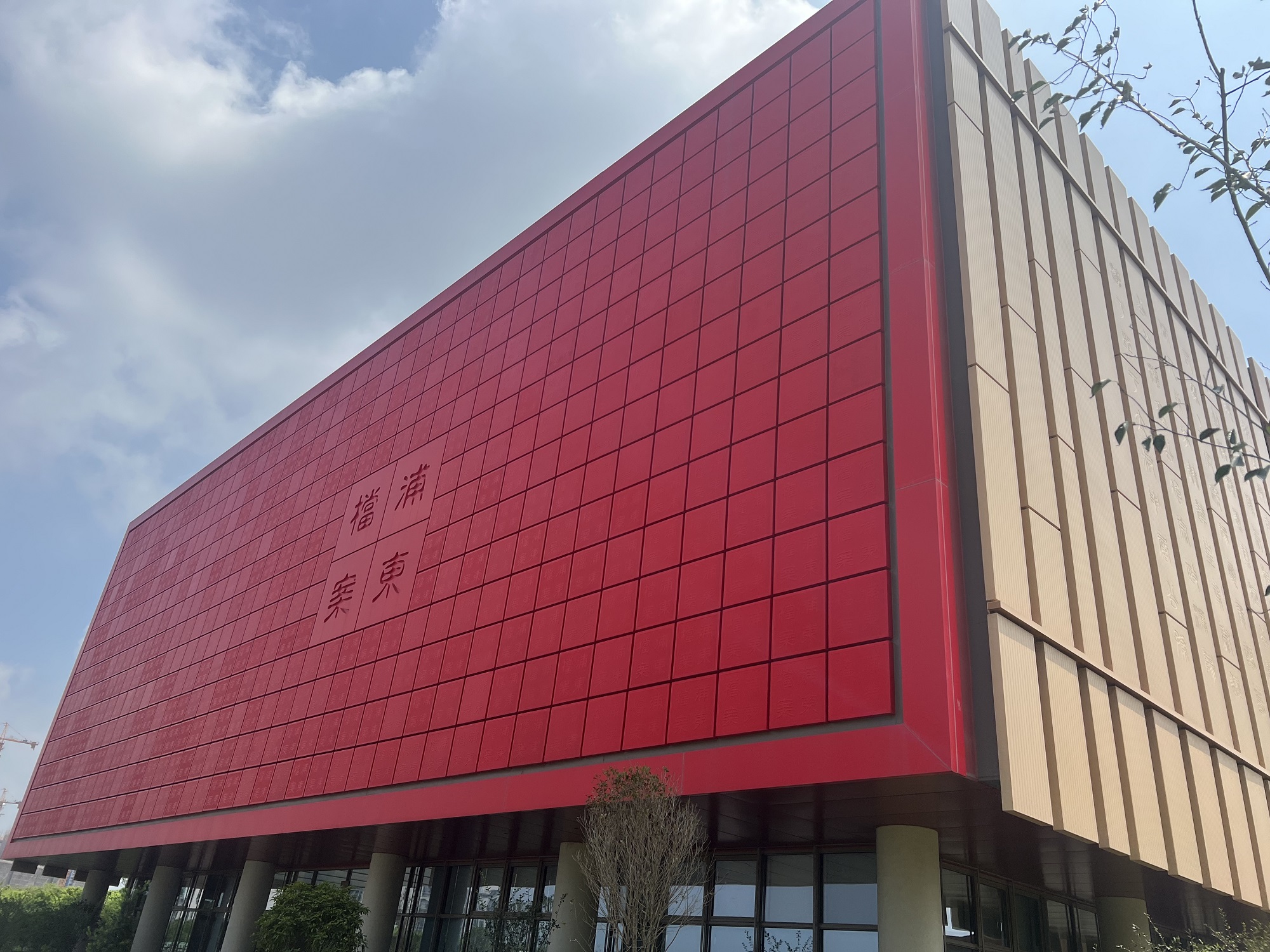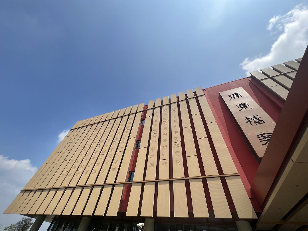 當(dāng)走近位于百潤(rùn)路100號(hào)的上海浦東新區(qū)檔案館時(shí),瞬間被這座充滿中國(guó)文化底蘊(yùn),用一方方紅色印章與一片片原色竹簡(jiǎn),巧妙搭配的建筑深深吸引。